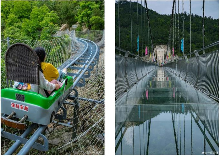 坐上刺激驚險(xiǎn)的高空漂流,全長(zhǎng)1.6公里的漂流道,一路歇斯底里的喊叫聲回蕩在山谷里……