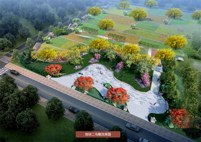 南山社區(qū)街頭綠地項目地塊二效果圖、鳥瞰圖